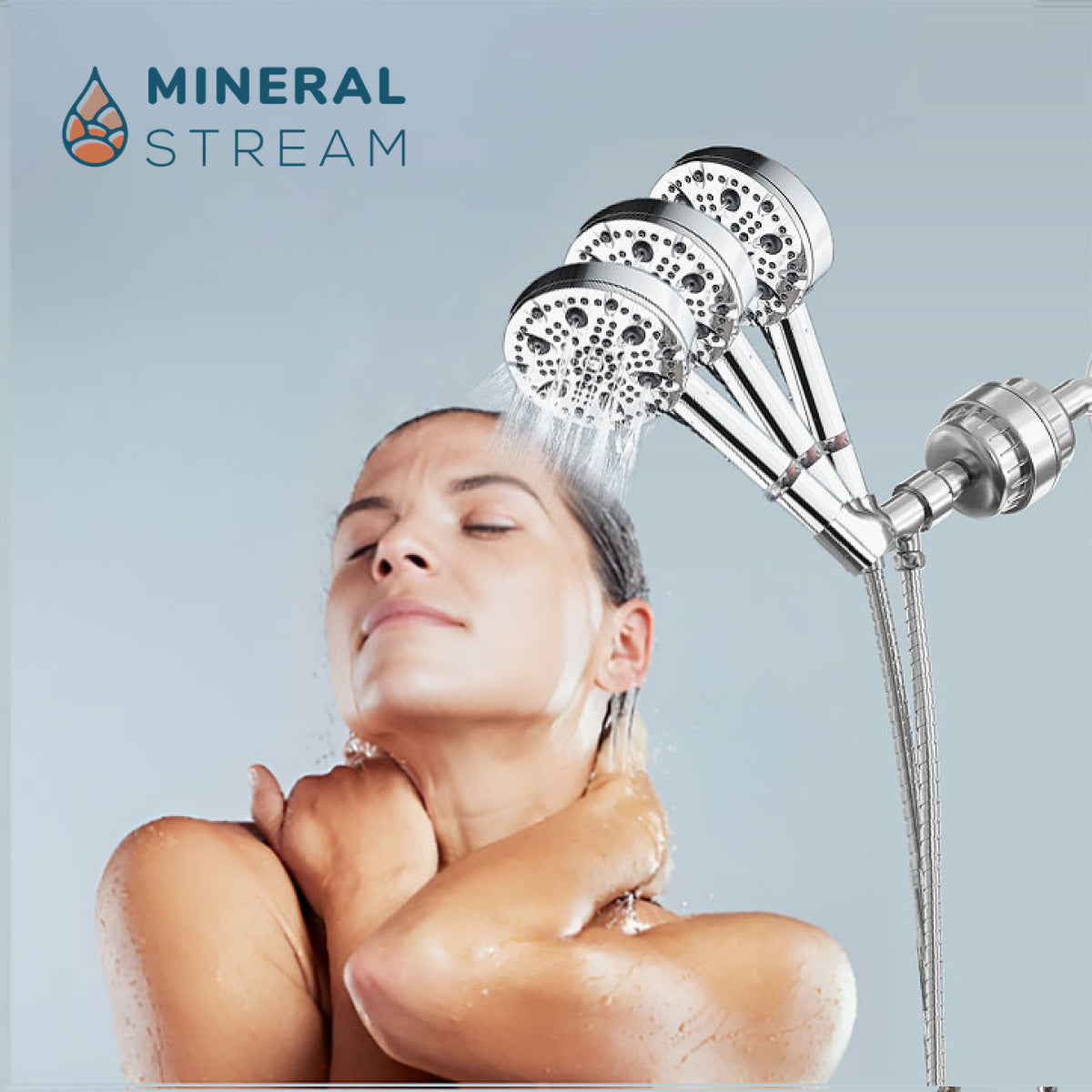 As shown in the second image, Mineral Stream provides a refreshing, high-pressure shower using mineral-infused filtration — for softer skin, healthier hair, and pure relaxation.