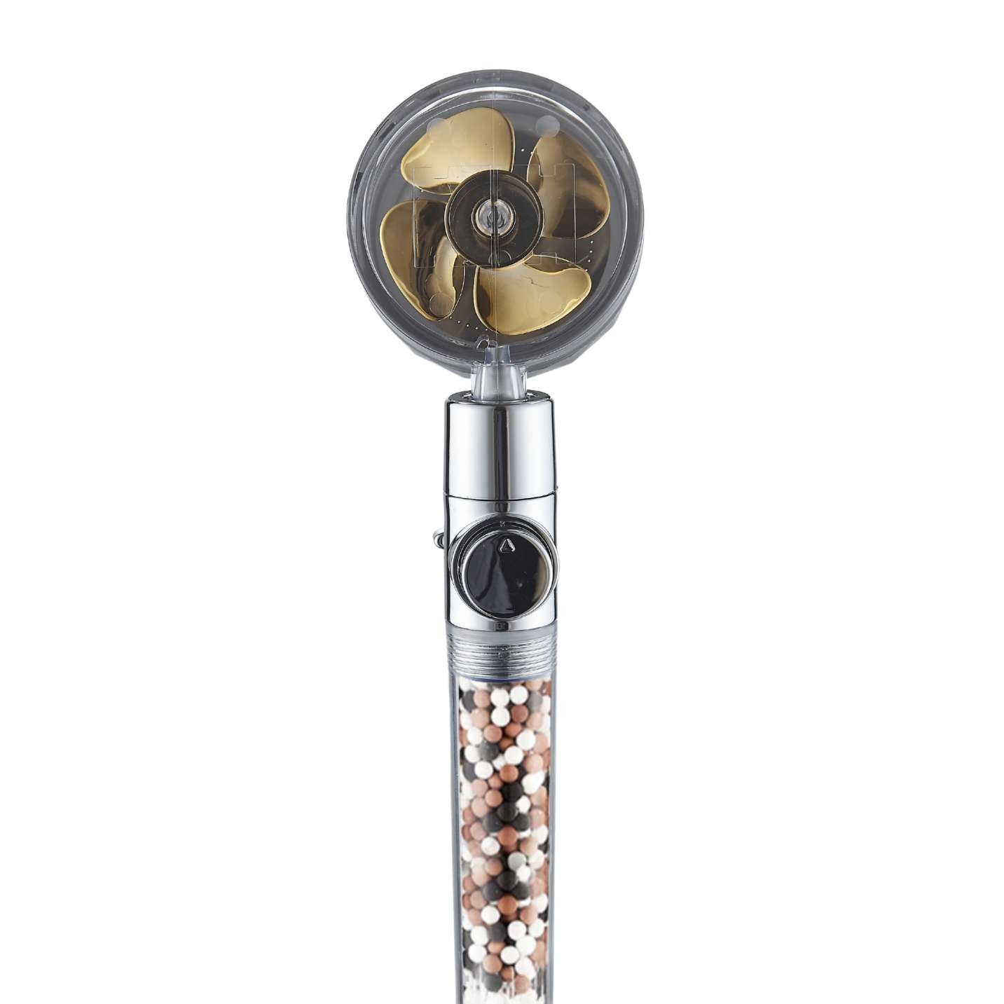 O chuveiro Mineral Stream TurboFan reduz o consumo de água em 30%, ao mesmo tempo em que aumenta a pressão da água em 200%. Seu chuveiro ajustável em 360° possui 95 saídas cortadas a laser e uma hélice potente que impulsiona uma pequena quantidade de água em alta velocidade. Assim, você pode desfrutar de chuveiros potentes e suaves sem se preocupar com contas de serviços públicos. Além disso, o botão STOP pausa o fluxo de água. e mantém sua temperatura.