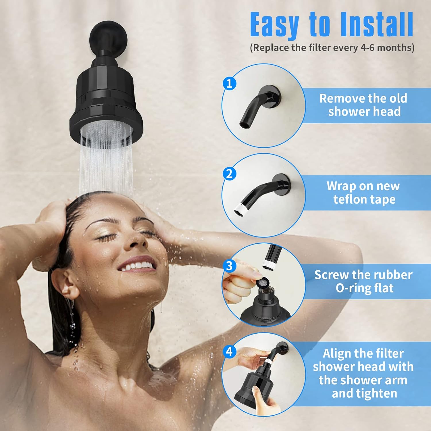 O chuveiro com filtragem de 15 estágios foi projetado para fácil instalação. Normalmente, você pode parafusá-lo no braço do seu chuveiro existente sem a necessidade de ferramentas especiais. Consulte sempre o manual de instruções incluso para obter instruções detalhadas sobre as etapas de instalação.